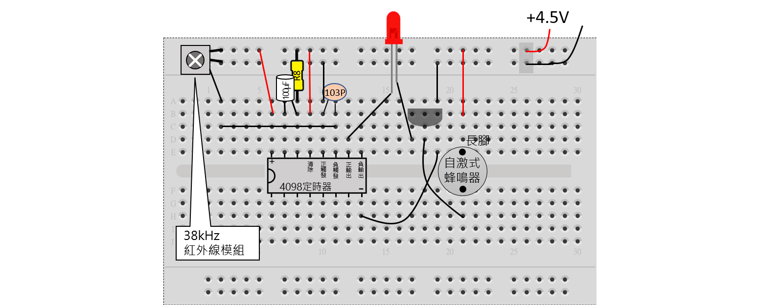 紅外線遙控馬達 用紅外線遙控器遙控馬達,電視遙控器或冷氣遙控器都可以,按下任何一個鍵都會發射出每秒振盪38000(次/秒)的紅外線。38KHz紅外線接收模組的三隻腳,只會接收38KHz紅外線,信號線的