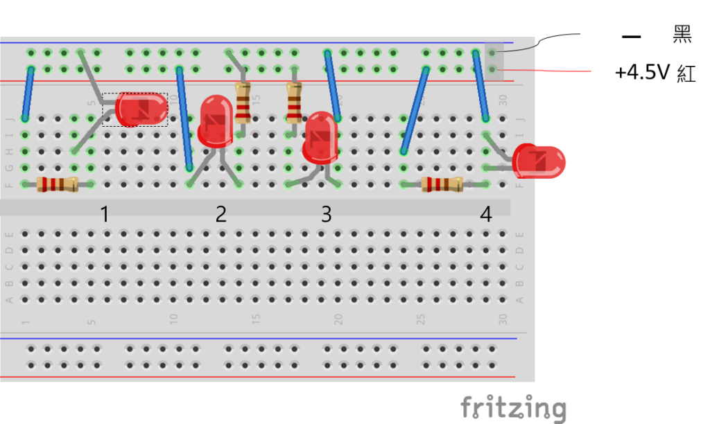 哪幾個LED不亮? 哪幾個LED會亮? 哪個LED會亮? 電壓的高低 請比較1,2,3,4點的電壓高低 5和哪一個點電壓一樣高? 6和哪一個點電壓一樣高? 5,6哪一個點電壓比較高? 5,7哪一個點電壓比較高?