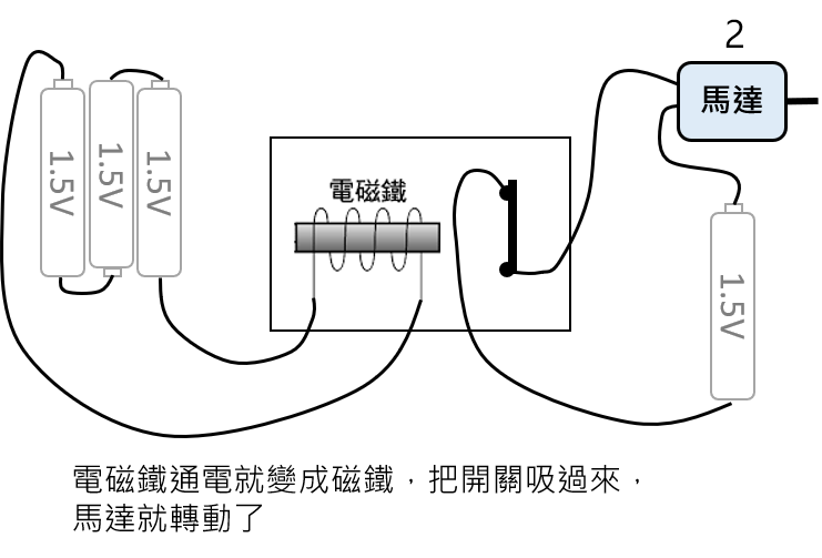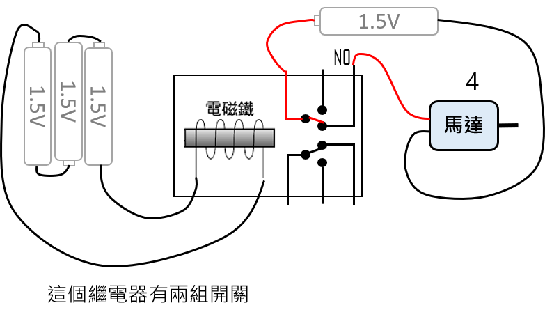 繼電器是一種機械式電流控制開關。它由一個線圈和一個金屬製成,該線圈被彈簧拉回。當電流流過線圈時,它會產生磁場,該磁場吸引金屬片並建立連接。