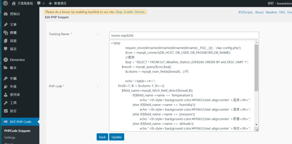 下面是顯示最新的環境溫度、溼度、氣壓及海拔訊息的php程式碼