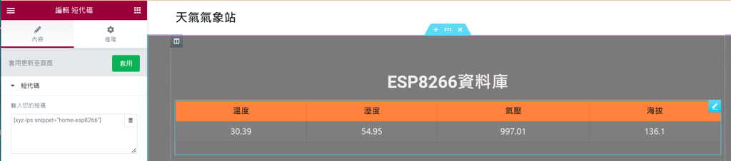 最後再按下發佈,並將該頁面設定為首頁,這樣我們就可以到網址中看到我們抓取的氣象站數據呈現。