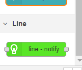 Line-Notify節點功能是收到function傳送過來的msg後,再送出給Line 聊天室的功能。這邊要先到Line bot設定ok後,取得token值,再將token填入本節點的設定。