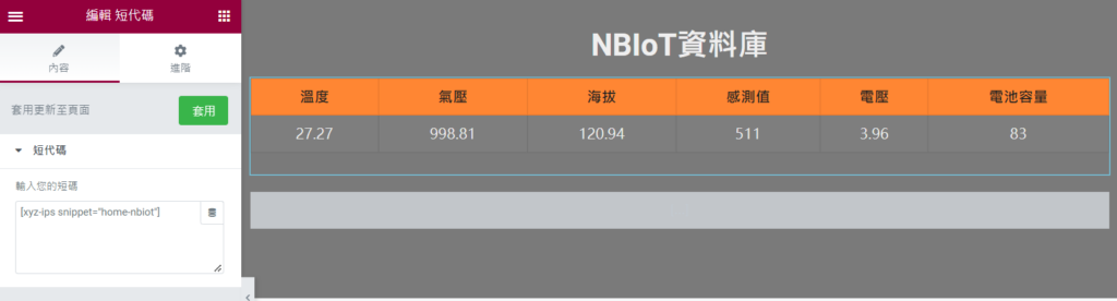 最後再按下發佈,並將該頁面設定為首頁,這樣我們就可以到網址中看到我們抓取的氣象站數據呈現。